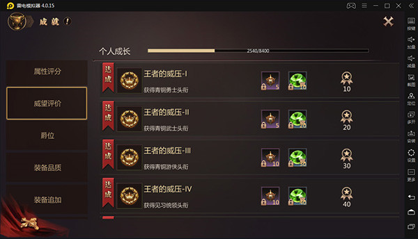 个人成长主要是针对玩家本身的成长,比如等级、战力、属性评分、装备、法宝之类。等级、战力的提升,都可以完成对应的成就,获得奖励。