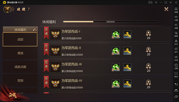 休闲福利更多的是主流玩法之外的成长,比如战勋、贵族、签到、金币、成就点数、答题等活动。休闲福利的奖励也较为丰厚,不过需要长期累积才行。