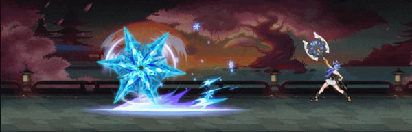 向前发射出一轮旋转的冰轮,冰轮会由小渐大,且会吸引被其命中的目标。