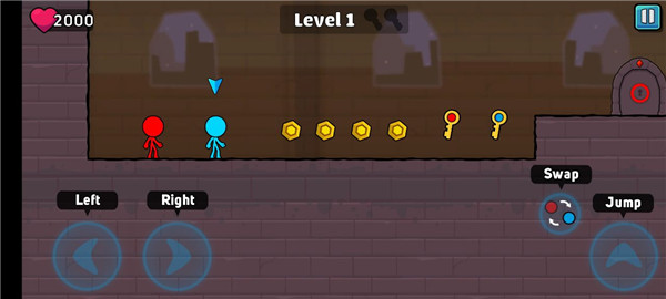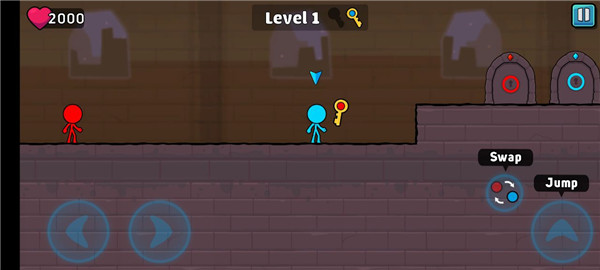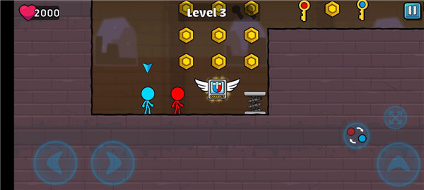 2、火柴人只能捡取自己颜色的钥匙,所以这时候要切换人物去捡取。