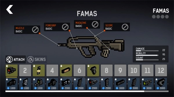 3、每个武器的零件都可以进行购买,当然前期可能并没有那么多的金币,玩家可以先去玩两盘。