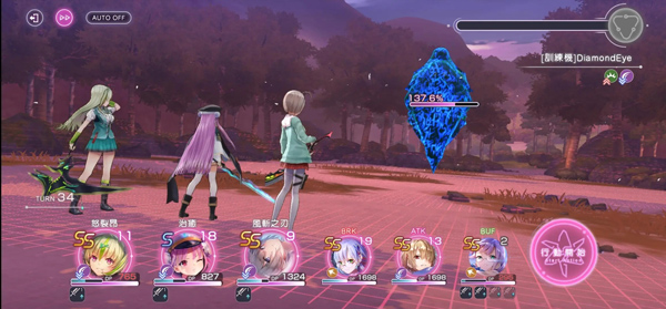 2、DP:设定上如同护盾一般的存在,可以由治疗角色恢复。大多数情况下我方DP只要归零即不可恢复,不过少数治疗角色技能和道具可以复活DP条。敌人同样拥有DP条,且经过一定回合数后会自动恢复,即使DP条被破坏也可复活。敌人的DP条被破坏时会有一回合无法行动。