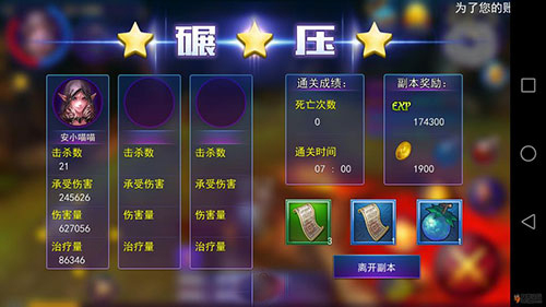 先晒一下通关截图,神使单刷50级副本3星通关,实战证明完全可行: