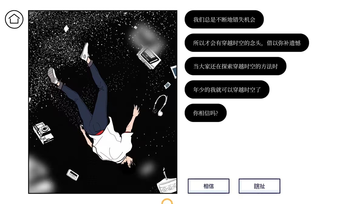2、随后游戏将播放序幕,点击“相信”,即可穿越时空。
