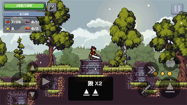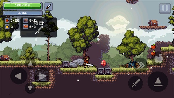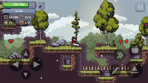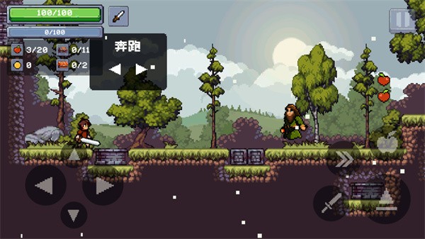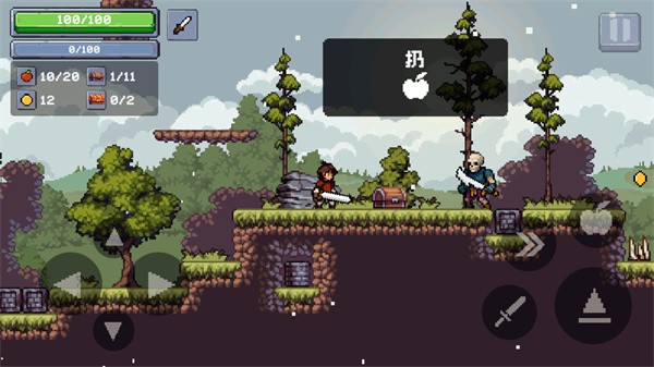 3、然后可以点击“剑”图标,就能使用武器攻击敌人,记得收集掉落的苹果。