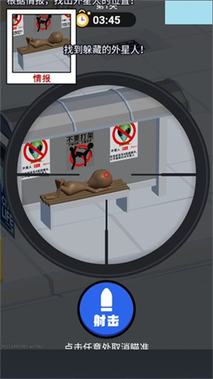 3D写实场景与趣味找茬射击相结合,外星人隐匿于日常环境中,还具备移动隐身能力,极大地增强了游戏的代入感。单人模式下,玩家需凭借出色的眼力与手速应对挑战,操作简便,极易上手。该游戏创意满满,巧妙融合找茬与射击玩法,趣味性十足。