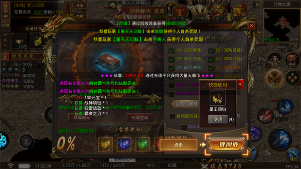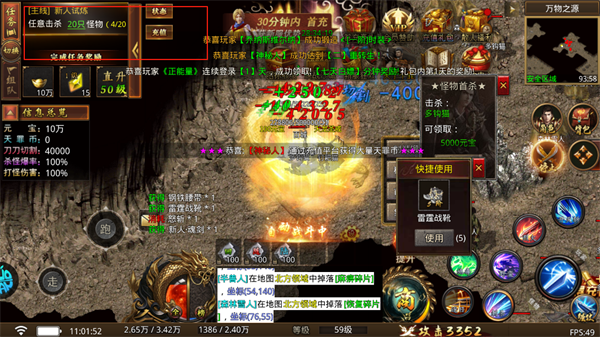 3、打怪随时会掉落项链、手套等各种装备,点击使用即可快速穿戴。