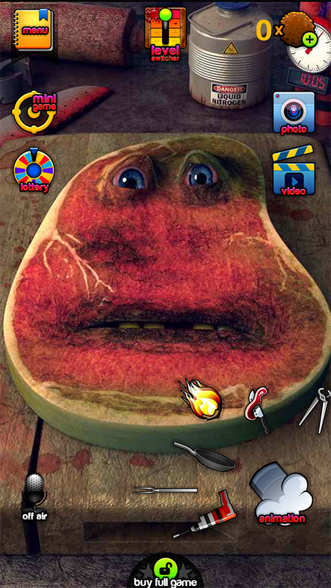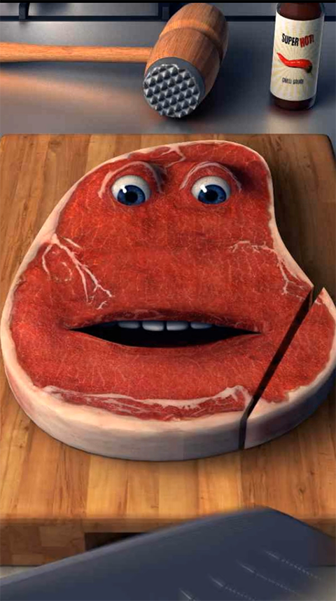1、恶搞解压体验:玩家能够随心“折腾”牛排“查理”,无论是切割、捶打还是烧烤等举动,都会引得它做出夸张逗趣的反应,像吐舌头、放声大笑之类,带来充满荒诞感的解压乐趣。