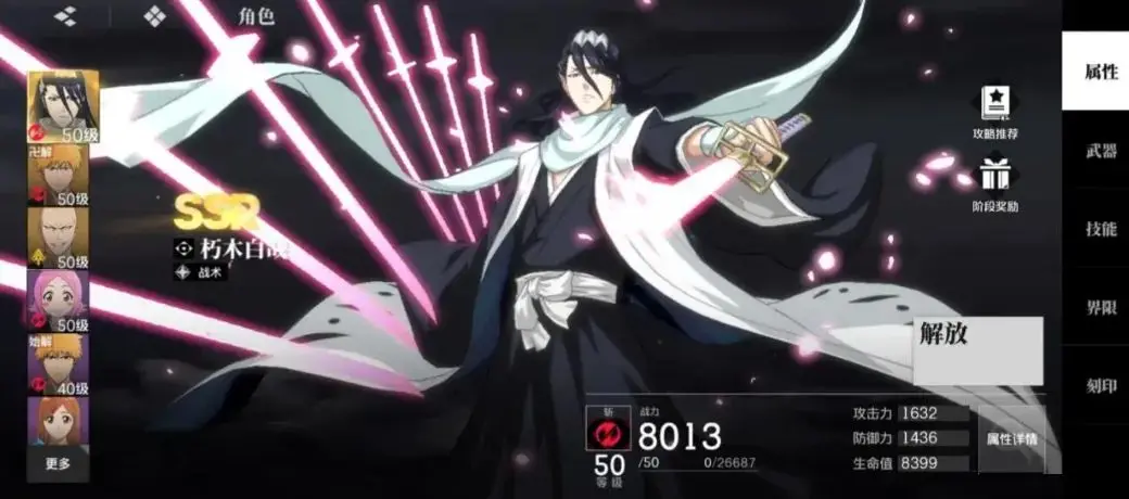 战技释放后为全队斩系角色附加 30% 伤害增益,且技能可脱手释放,切换角色不中断战斗节奏;自身输出强势,卍解后爆发与持续伤害拉满,纯斩系队伍必备。