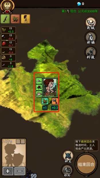 7、接着把工人拖拽至该位置,随后点击结束回合以推动时间,此时工人便会产出资源。