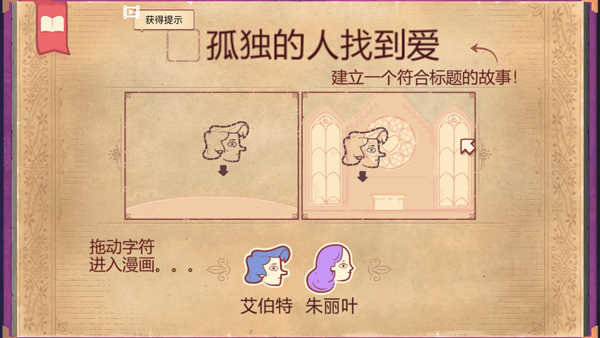 3、如图所示进入游戏后,玩家需要将字符拖入漫画之中,进而构建出一个与标题相符的故事。