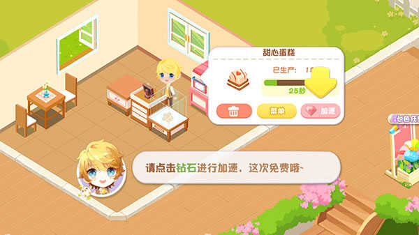 4、于多元化玩法里领略游戏的乐趣,制作蛋糕、探索地图,让你的生意更添精彩趣味。