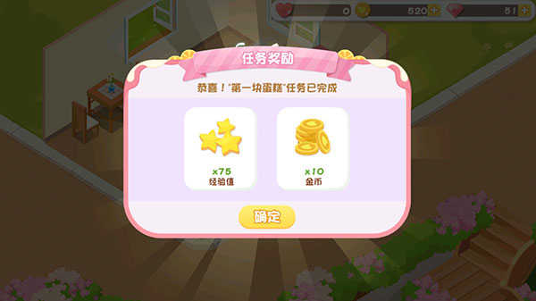 5、当我们卖第一块蛋糕后,就能完成第一个任务。