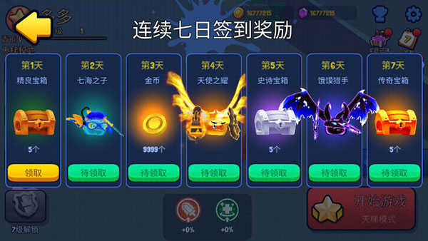 5、在右上角的签到处,只要连续签到七日,就能获得以下奖励。