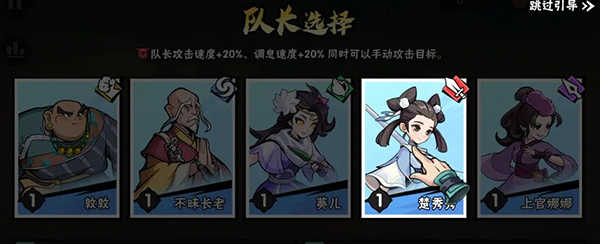 1、踏入局内,少侠需先从五人小队中挑选一名侠客担任“队长”。这位队长侠客将冲锋在前,成为首个登场迎击第一波敌人的侠客。而且,“队长”能获得攻速提升20%、调息速度加快20%,以及可手动选定攻击目标的队长Buff。建议少侠选择自身阵容中战力最强的侠客担任队长。
