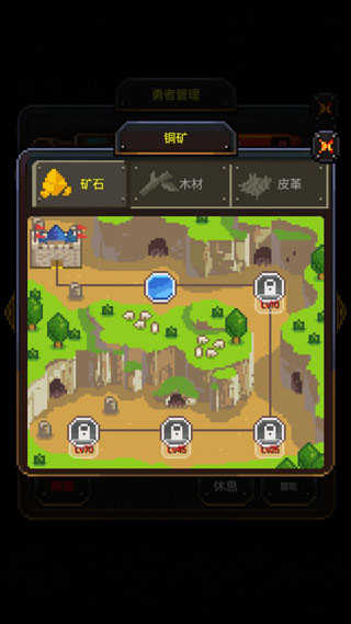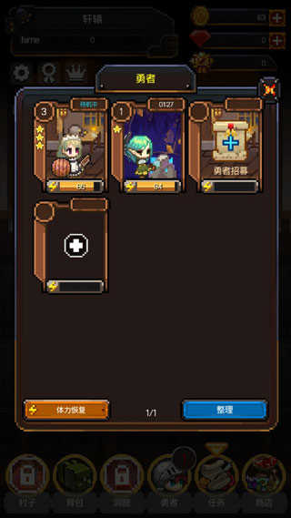 4、玩家每次冒险,勇士的经验值都会增加,等勇士等级上升到一定时,就可以去新的地方冒险了,得到更多的高级材料。勇士每次冒险时间并不长,但是需要花费一定的体力,在体力消耗完毕以后,就需要休息恢复体力