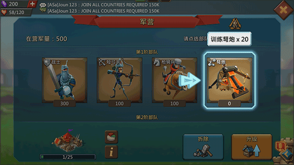 2、玩家同样需要提升自身士兵等级,如此方能在后期达成绝地反击。