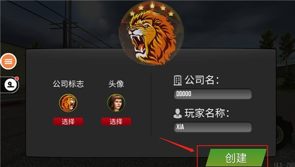 初次进入游戏时,需要创建运输公司,具体操作包括输入公司名称、玩家名称,同时设置公司标志与头像。