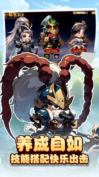 游戏核心是“武将招募养成”与“策略阵容搭配”。玩家可通过“招贤纳士”招募来自魏、蜀、吴、群四大阵营,以及“神”、“魔”稀有阵营的武将。每位武将拥有独特的主动技能和被动天赋,并可通过穿戴神兵、觉醒命魂大幅提升战力。战斗中,需要根据敌方阵容,合理搭配前排坦克、后排输出与辅助治疗,并利用武将技能间的连锁效果(如冰冻、灼烧、感电)打出“元素连携”,克敌制胜。