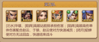 【陷阵】高顺+【汜水】华雄+【闭月】貂蝉+【百骑】甘宁+赵云+于禁。