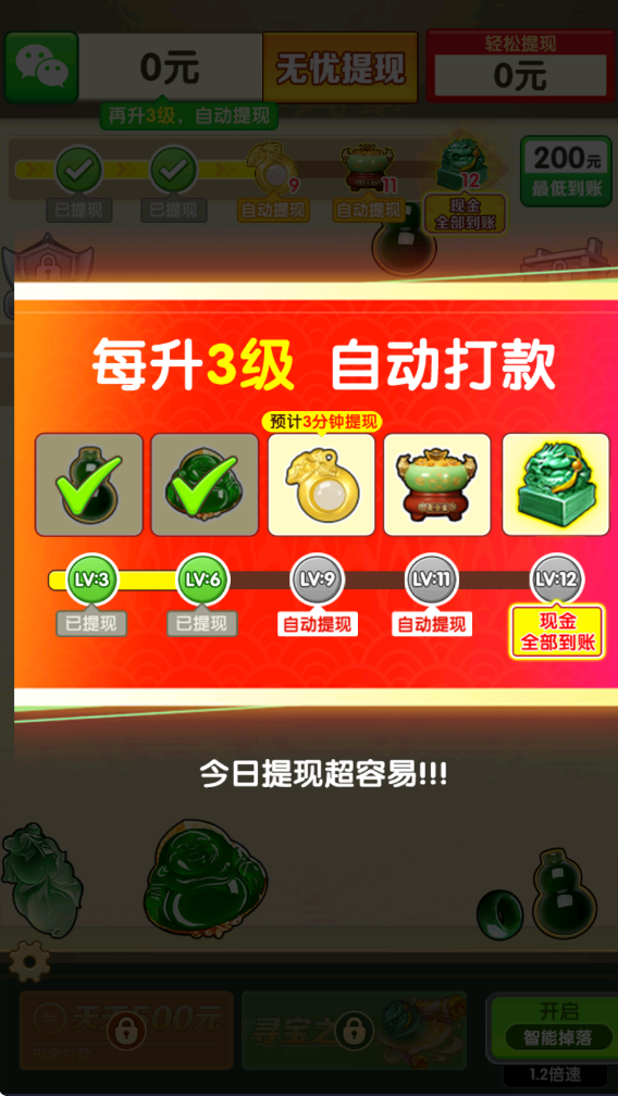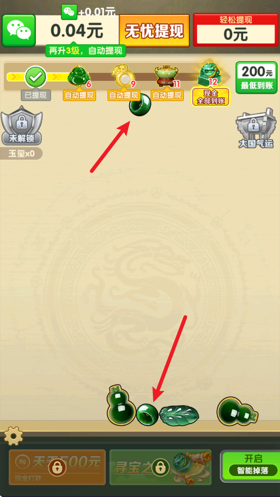 年富一年红包版是一款以翡翠为主题的休闲合成闯关游戏,玩家通过点击或拖拽,将相同的翡翠物件进行合成,合成后生成更高级的物品。每一关都有特定的目标,例如合成某种高级物品或达到一定的合成数量,玩家需要完成目标才能进入下一关。