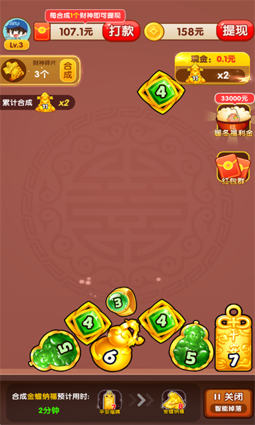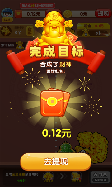 每次通过合成得到新物品的过程真的超级解压,而且合成还有机会获得奖励。合成出最高等级的财神后还会有额外的惊喜福利哦!