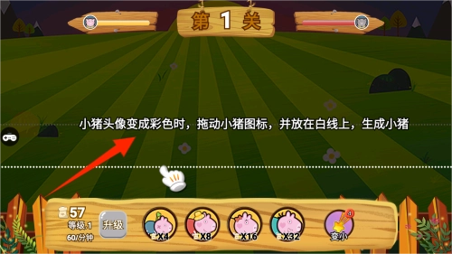 4、当普通小猪进化成闪耀的彩色特殊形态后,就能把它拖到指定区域,生成具备特殊能力的战斗单位。