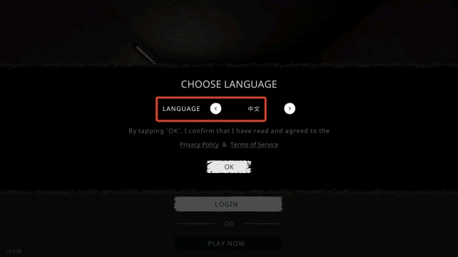 1、打开游戏,游戏默认是英文。我们点击language左侧按钮,就会出现“中文”选项,如下图所示: