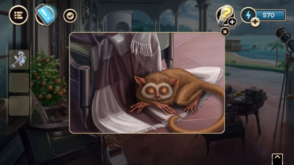 6、等你完成对话后,就可以回到打开行李箱的位置,把椅子上的猴子赶走,这样就能拿到毛巾了。
