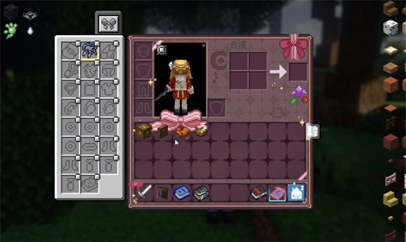 1、刚开始打开物品栏时,会看到一些初始资源,里面还包含部分首饰,这些首饰是可以装备使用的。界面左上角设有任务栏,整合包内的所有内容都集中在这里,其中有一些内容需要玩家手动点击对应的选项才能完成解锁,解锁后才能正常使用相关功能或内容。