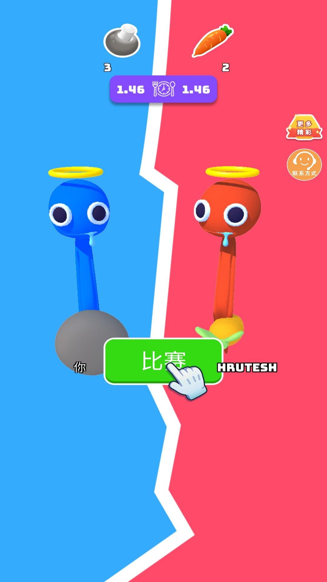2、和其他玩家或是虚拟对手展开对战,较量进食的速度与食量,争取胜利,从而提高自己的排名。