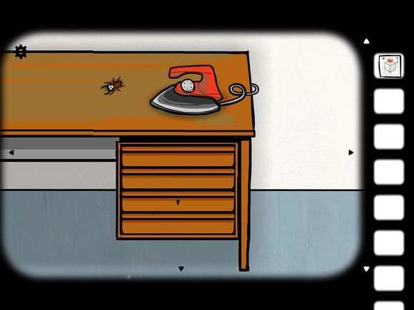 4、接下来会有残忍的一幕,点击桌子切换到熨斗场景,先点击熨斗将其抬起,再点击小虫让它爬过去……