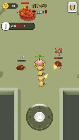 2.游戏进行时,你可以通过左右滑动屏幕来调整小鸡的攻击方向,这样就能轻松战胜不断袭来的敌人。