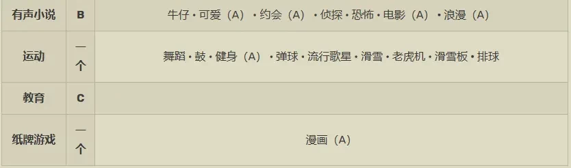 模拟题材涵盖:赛马竞技、恋爱互动、电车驾驶、书店经营、漫画创作、电影制作、游戏公司运营、城市建设规划、建筑设计、美少女养成、卡通角色塑造、明星养成、蘑菇培育、摩托车骑行、足球赛事、F1赛车竞速