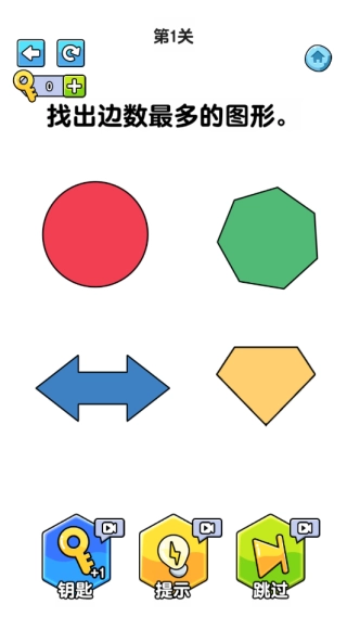 3、点击找出边数最多的图形试试吧,如果想要提示可以看下方的广告来获得。