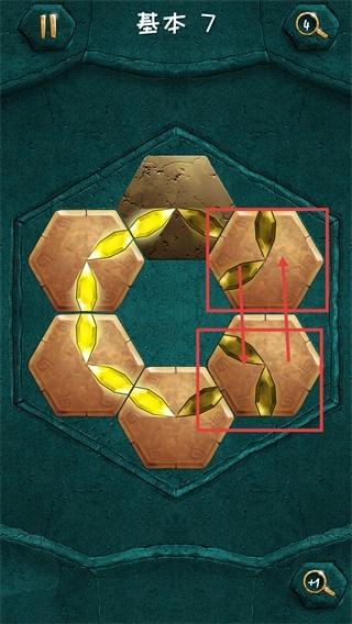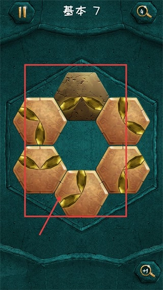 2、进入【基本-7】关卡后,观察红色框选的拼图块布局,需调整这些拼图块,衔接金色纹路来推进本关进度。