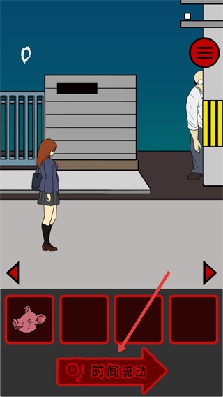 进入关卡后,点击【时间流动】按钮推动剧情发展,与此同时留意场景中的【角色-可疑人物】,并提前准备好用于互动的道具。