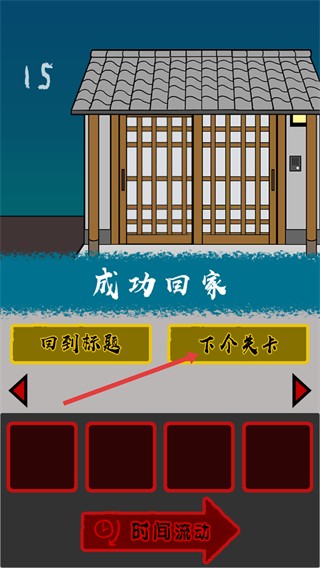 4、当【成功回家】的提示出现后,点击【下个关卡】按钮,即可进入后续的剧情关卡进行挑战。