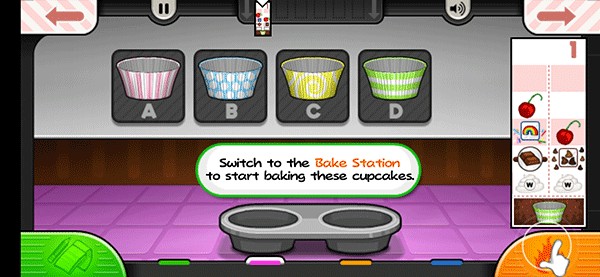 7、然后切换到构建站,按照右边客户订单上的需求为纸杯蛋糕添加装饰。
