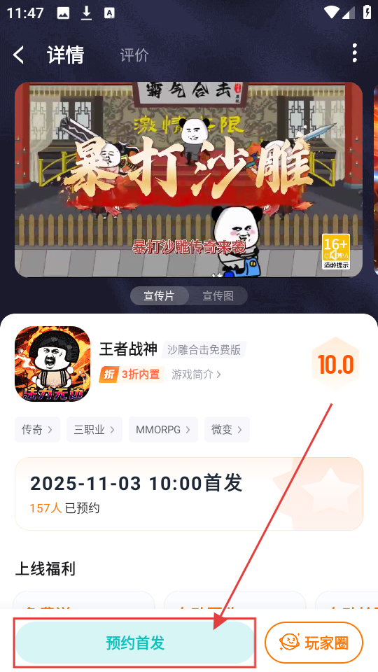 3、进入游戏详情页后,点击【预约首发】按钮,即可完成该游戏的预约,这样就不会错过游戏上线的消息了。
