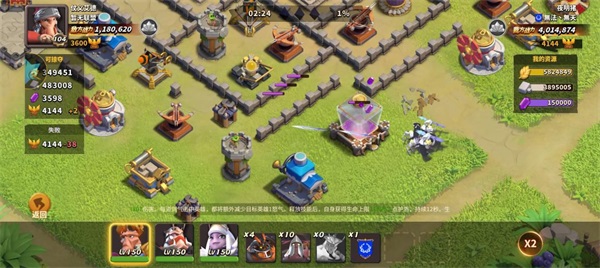 这是前期攻略阶段,资源方面比较紧张,所以哪怕战斗会输,我们也得珍惜每一次掠夺的机会。挑那种资源仓库暴露在外面的目标,用远程小兵或者英雄打完就撤,这样能做到零损失哦 O(∩_∩)O