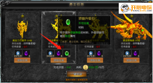 首饰升级可以提升自身属性,不同部位的升级需要消耗对应部位的升级石,比如项链升级就需要项链升级石。升级石的获取方式比较便捷,完成每日勇士任务不仅能得到大量经验奖励,还会获得数量不等的各类升级石,这是玩家获取升级石最主要的途径。大家在选择勇士任务时一定要选三星任务,因为任务星级越高,奖励就越丰厚,其中三星任务的奖励是最高的。