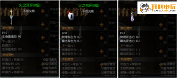 三种首饰因佩戴部位不同,各自的属性也存在差异。耳环属于防御类,能提升防御力与生命值;项链和指环则归为攻击类,可增强玩家的攻击力。另外,由于项链仅有一个佩戴位置,其属性加成要比指环更高。