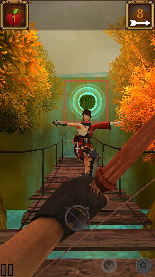 你需要瞄准人物头顶上放置的水果,然后拉动弓弦积攒力量,同时调整好射击的角度,接着松开手指让箭矢发射出去,尽量射中那个水果。每成功射中一次水果,就能让关卡进度往前推进。
