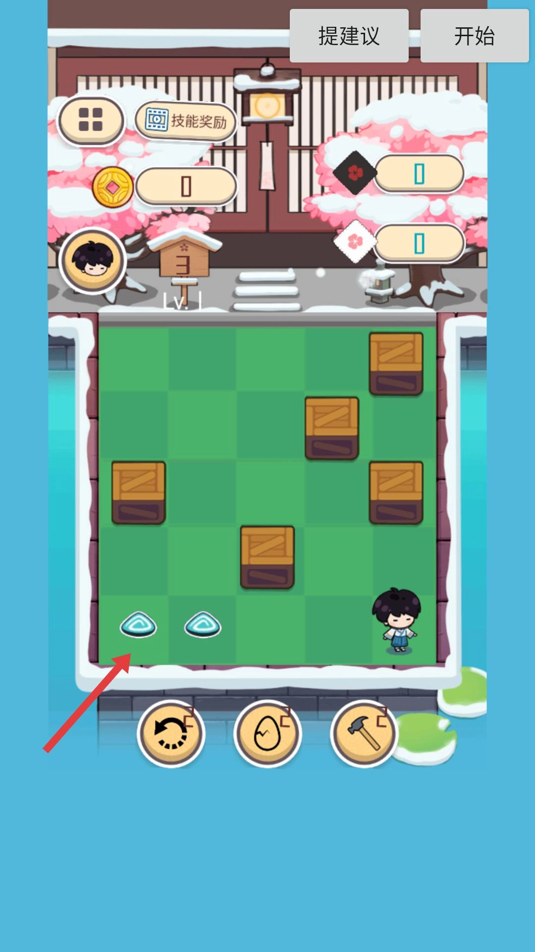 点击开始游戏即可进入关卡,你可以先查看历史最佳得分,明确挑战目标,借助界面上的道具,开启这场趣味十足的推箱冒险。