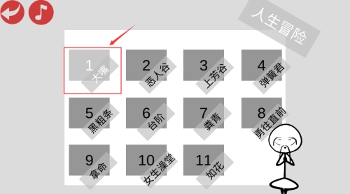 选择红框大嘴选项,进入人生冒险第一关卡。