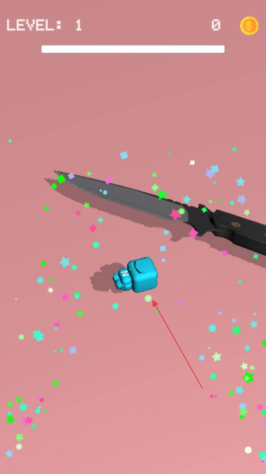 当使用刀具切割紫色晶体时,晶体便会转化为蓝色的小物件,与此同时,其周围还会浮现出彩色星星、方块等特效,以此呈现切割成功的效果。