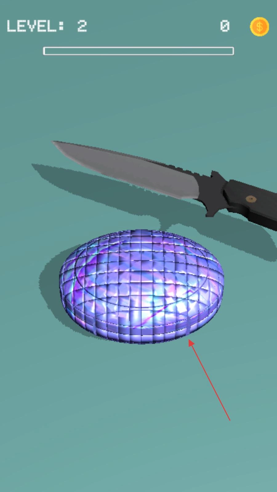 进入第二关后,视野里会出现刀具和一个紫色的网格状圆形物体,此时需要操控刀具向该物体靠近,做好切割准备,以此开启全新的切割挑战。