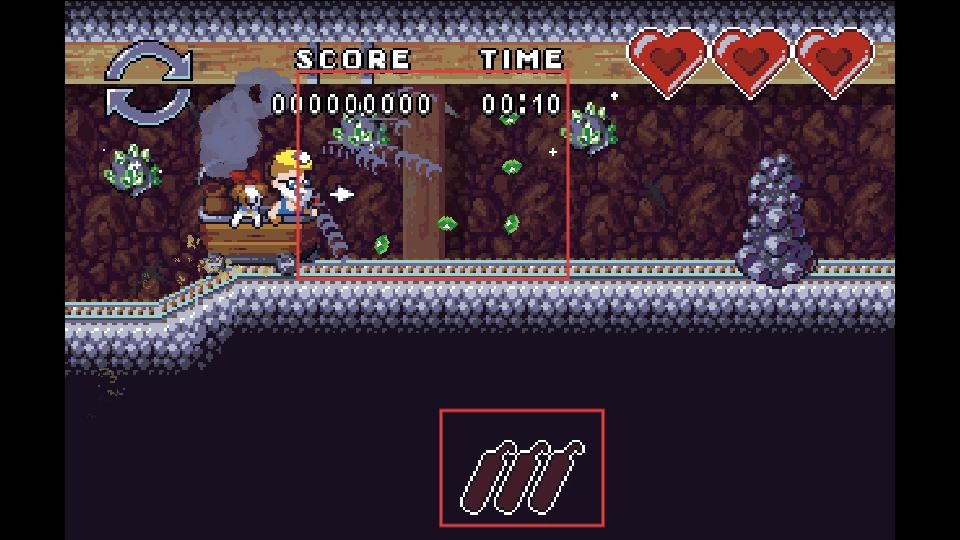 在冒险途中遇到宝石时,可以借助道具等途径来收集它们,与此同时要留意剩余时间和自身的生命值,这样才能保证冒险能够顺利开展下去。