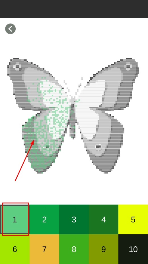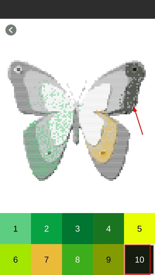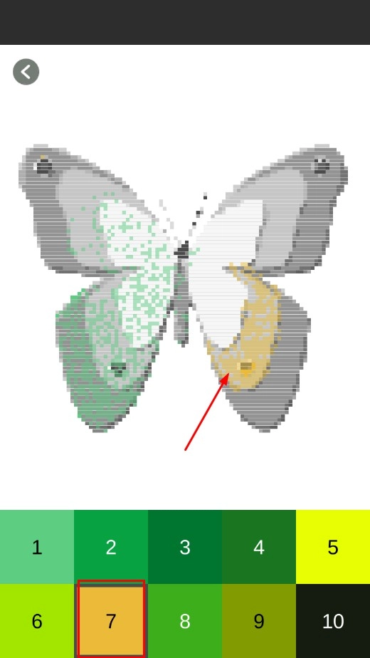 按照下方给出的颜色选项,挑选对应的颜色后,点击蝴蝶图案上的相应区域,就能为该区域填充色彩,通过这样的方式一步步完成蝴蝶的绘制。